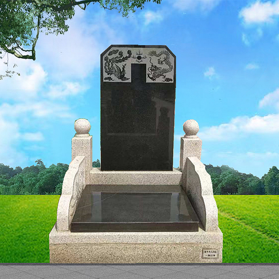 碑型采用传统文化元素,中式庭院,简约合葬墓。这款墓碑龙凤当头,阴阳完美结合,选用的是喷砂工艺致使龙凤栩栩如生,龙凤呈祥象征着世代昌隆。